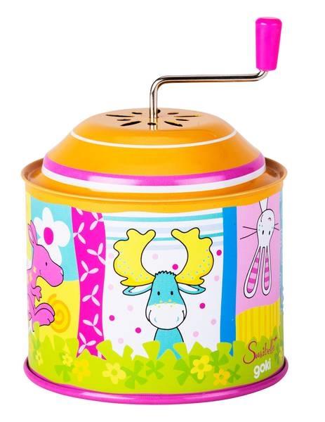 Podczas kręcenia korbką metalowa puszka wydaje przyjemne dla ucha dźwięki.