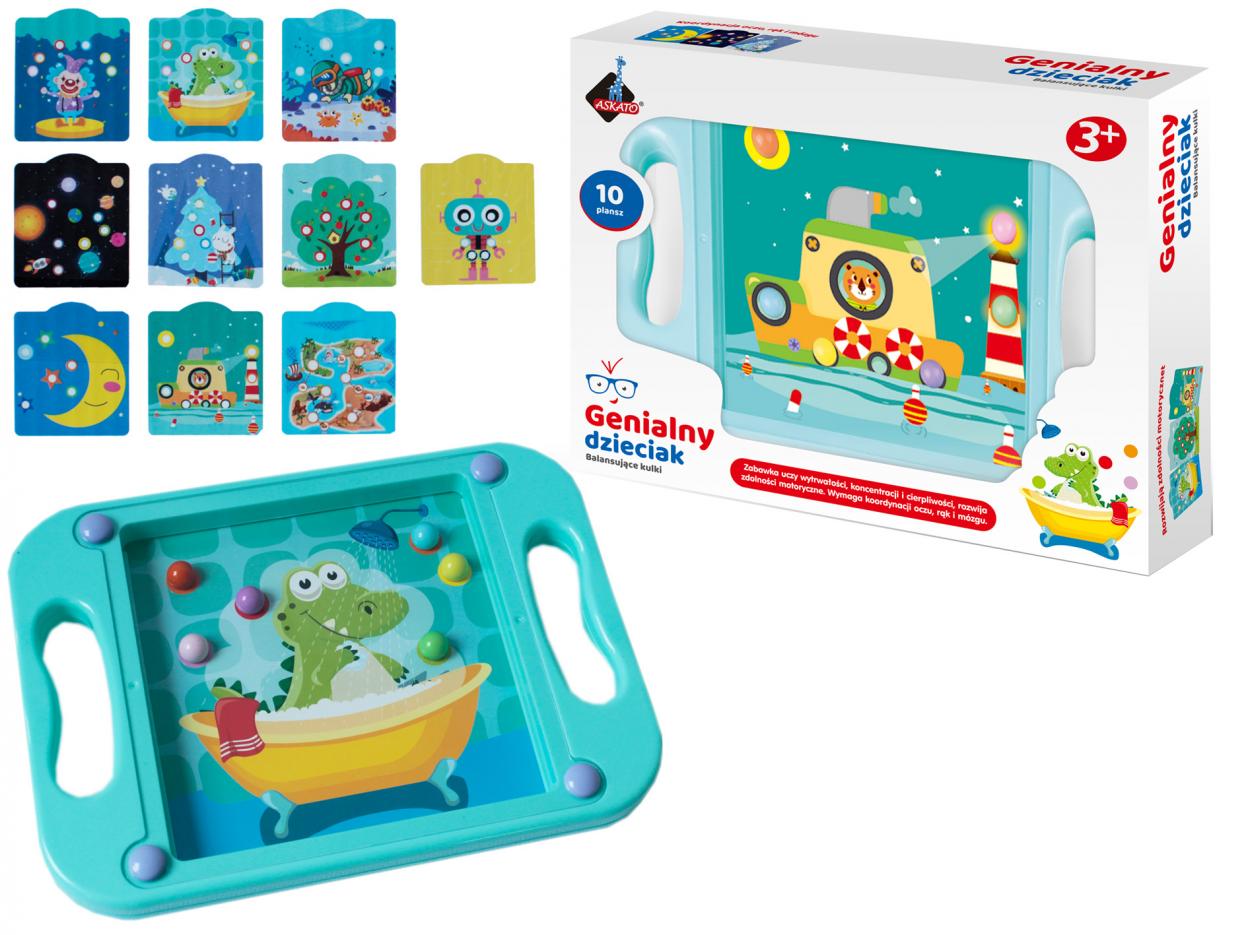 Jest to gra zręcznościowa, która pomoże dzieciom w rozwoju zdolności motorycznych, skutecznie wyćwiczy koncentracj i cierpliwość, jednocześnie poprawi koordynację ręka oko i równowagę dziecka. Balansujące kulki mają aż 10 wymiennych obrazków. Jaskrawe kolory kulek zachęcą dzieci do zabawy, stymulując rozwój mózgu.