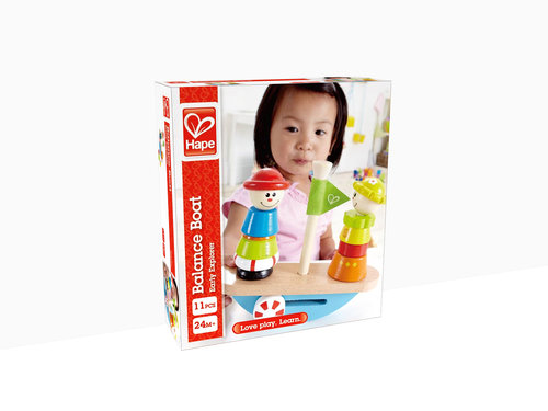 Wykonany z ekologicznego drewna statek balansuje zgodnie z obciążonym pokładem. Barwną załogę można układać na pokładzie w dowolnej konfiguracji. Zabawka malowana bezpiecznymi dla dziecka farbami wodnymi.