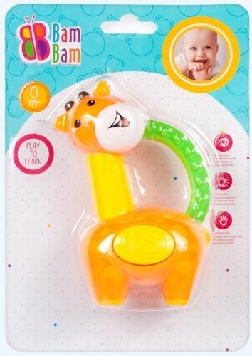 GRZECHOTKA ŁOŚ przeznaczona dla niemowląt od 3 miesiąca życia. Intensywna kolorystyka, zróżnicowna faktura oraz kształt w postaci łosia sprawiają, że grzechotka jest doskonałą zabawką edukacyjną. Posiada elementy interaktywne zachęcające malucha do zabawy, stymulując rozwój jego zmysłów wzroku, słuchu oraz zdolności motorycznych. Zielony uchwyt ułatwia chwytanie zabawki i utrzymanie jej w maych rączkach.