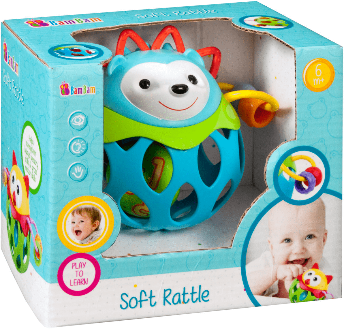 MIĘKKA, GUMOWANA KULA z GRZECHOTKĄ JEŻYK BAM BAM to idealna zabawka edukacyjna dla dziecka od 6 miesiąca życia. Wykonane z miękkiej i plastycznej gumy, z regularnymi otworami, w pełni pozwalają małym rączkom na chwytanie, ugniatanie, turlanie oraz potrząsanie, wydając przy tym efekty dźwiękowe, dzięki umieszczonej we wnętrzu grzechotce. Faktura i właściwości materiału, z jakiego została wykonana kula, pozwala im zawsze powracać do pierwotnego kształtu. Boczne uchwyty z kolorowymi obręczami są dodatkowym elementem, który rozwija zdolności manualne oraz urozmaica zabawę. Zabawka wpływa na rozwój wielu zmysłów, między innymi słuchu, wzroku oraz zdolności motorycznych