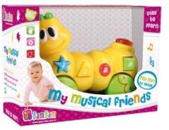 Interaktywna zabawka MUZYCZNA GĄSIENICA przeznaczona jest dla dzieci powyżej 18 miesiąca życia. Aż 40 melodyjek wraz z migoczącymi przyciskami zapewni zarówno długą zabawę dziecku, jak i umożliwi rozwój zdolności wizualnych i słuchowych. Mozliwość zmiany melodii poprzez naciskanie migoczących przycisków rozwija koordynację  ruchową i zdolności manualne.