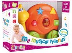 Interaktywna zabawka MUZYCZNY ŚLIMAK przeznaczona jest dla dzieci powyżej 18 miesiąca życia. Aż 40 melodyjek wraz z migoczącymi przyciskami zapewni zarówno długą zabawę dziecku, jak i umożliwi rozwój zdolności wizualnych i słuchowych. Mozliwość zmiany melodii poprzez naciskanie migoczących przycisków rozwija koordynację  ruchową i zdolności manualne.