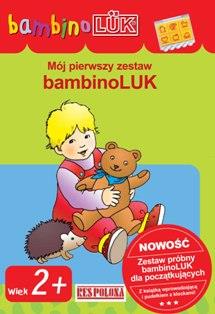 Otwórz pudełko z klockami bambinoLUK i połóż je na otwartej książeczce bambinoLUK. Ułóż klocki symbolami do góry na obrazkach, na których w lewym górnym rogu widnieje taki sam symbol. Na przykład klocek z czerwonym domkiem połóż na obrazek, który w lewym górnym rogu ma taki sam domek. Gdy ułożysz już wszystkie klocki, weź ten z domkiem i przyjrzyj się obrazkowi, na którym leżał klocek. Zastanów się, który obrazek na dolnej stronie pasuje do niego. Połóż klocek na tym obrazku. Powtórz to z pozostałymi pięcioma klockami i obrazkami. Następnie zamknij i odwróć pudełko. Ułożony wzór powinien być identyczny jak ten podany obok ćwiczenia, który jest jego prawidłowym rozwiązaniem. Sprawdź, czy się zgadza.