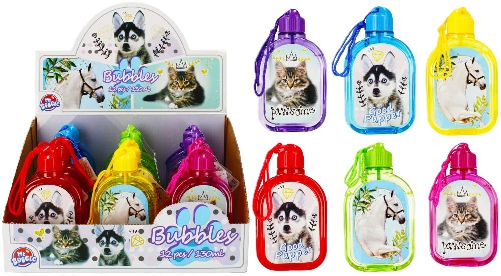Płyn do baniek mydlanych My Bubble idealnie nadaję się do uzupełnienia pistoletów, mieczy do robienia baniek lub innych maszynek i przyrządów. Jest bardzo wydajny a dodatkowym atutem jest możliwość robienia baniek bezpośrednio z butelki bez przelewania do odpowiednich maszynek! Płyn w butelce w kształcie Piersiówki wraz z pałeczką do puszczania baniek. Występują w sześciu wersjach kolorystycznych. Należy chronić oczy przed kontaktem z płynem. Opakowanie wykonane z plastiku.
