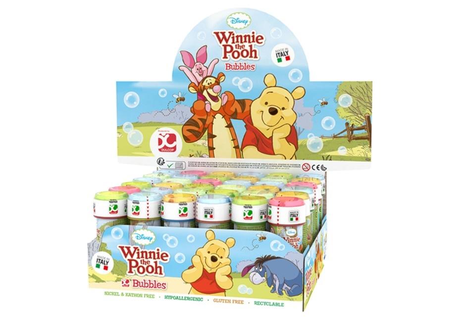 Bańki mydlane z motywem z bajki Kubuś Puchatek i przyjaciele i grą zręcznościową labirynt. Bańki mydlane na licencji Disney, pojemność 60 ml. Mix wzorów Możliwość zakupu jedynie w opakowaniach zbiorczych - 36 szt.