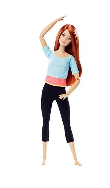 w szyi, w ramionach, w łokciach, w nadgarstkach, w torsie, w biodrach, w udach, w kolanach i w kostkach. Zapewnia to fantastyczną elastyczność i niewiarygodny wręcz zakres ruchów! Zawsze modne lalki Barbie® Made To Move™ mają na sobie nowoczesne stroje: czarne leginsy i kolorowe bluzki, które podkreślają ich dynamiczność. Nic już nie krępuje ani ruchów ani wyobraźni! W zestawie lalka Barbie® w ubrankach.