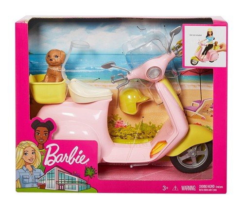 Wyjedź naprzeciw przygodzie z Barbie® na skuterze. Towarzyszyć będzie Ci ukochany zwierzaczek, który zawsze jest gotowy na wycieczkę! Różowo-żółty stylowy skuter zdobią srebrne akcenty. Posadź Barbie® (sprzedawana oddzielnie) na siedzisku ze specjalnym zaczepem, który przytrzyma ją podczas jazdy. Zwolnij podpórkę, aby wyruszyć ku nowej przygodzie. Szczeniaczka umieść bezpiecznie w żółtym tylnym koszyku. Żółty kask dla Barbie® to gwarancja bezpieczeństwa i dobrego stylu. Bez względu na to, czy wybierasz się na krótką przejażdżkę, czy jedziesz na wielką wyprawę – ten słodki skuter jest gotowy do drogi! W zestawie skuter dla Barbie® z koszykiem, szczeniaczkiem i kaskiem. Lalka nie znajduje się w zestawie. Kolory i elementy dekoracyjne mogą się różnić.