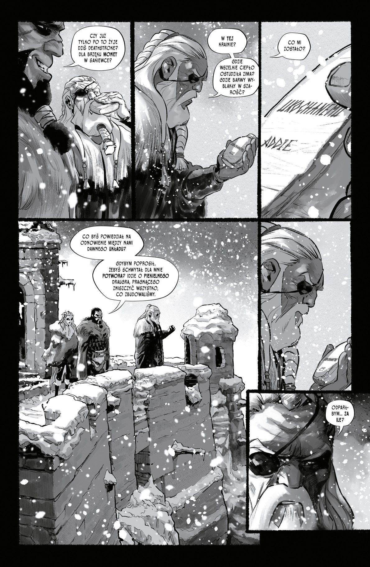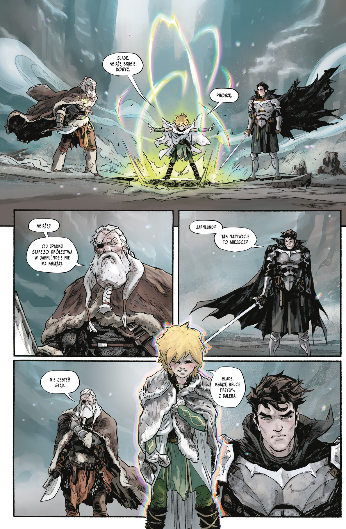 Śnieżyca nie odpuszcza, krew czernieje, a barwy stanowią odległe wspomnienie. Legendarny zabójca Deathstroke grasuje na lodowych pustkowiach, mordując na zlecenie skłóconych Jarlów. Lecz gdy płatny morderca stanie się obrońcą, czy zdoła odczynić klątwę niszczącą jego kraj, czy prędzej dopadną go konsekwencje ponurej przeszłości? Uznany pisarz SF i fantasy Jay Kristoff połączył siły ze wschodzącą gwiazdą rysunku Tirsem, aby stworzyć niniejszy album. W tym tomie zawarto również opowieść Toma Taylora, twórcy świata "Mrocznych Rycerzy ze Stali", zilustrowaną przez Riccarda Federiciego ("Superman Action Comics: Arena"), przedstawiającą nową genezę Aquamana w konwencji magii i miecza!