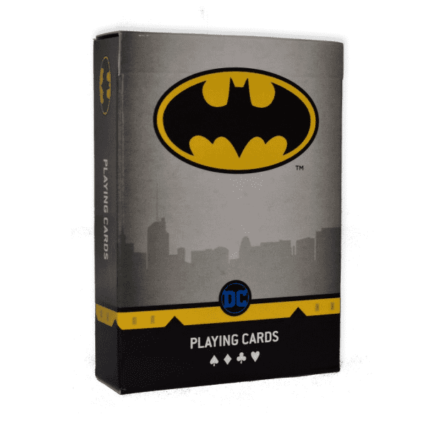 Karty do gry Batman Produkt zawiera 52 karty do gry + 3 Jokery w formacie 56x87mm. Pakowany jest w eleganckie kartonowe pudełko zabezpieczone folią.