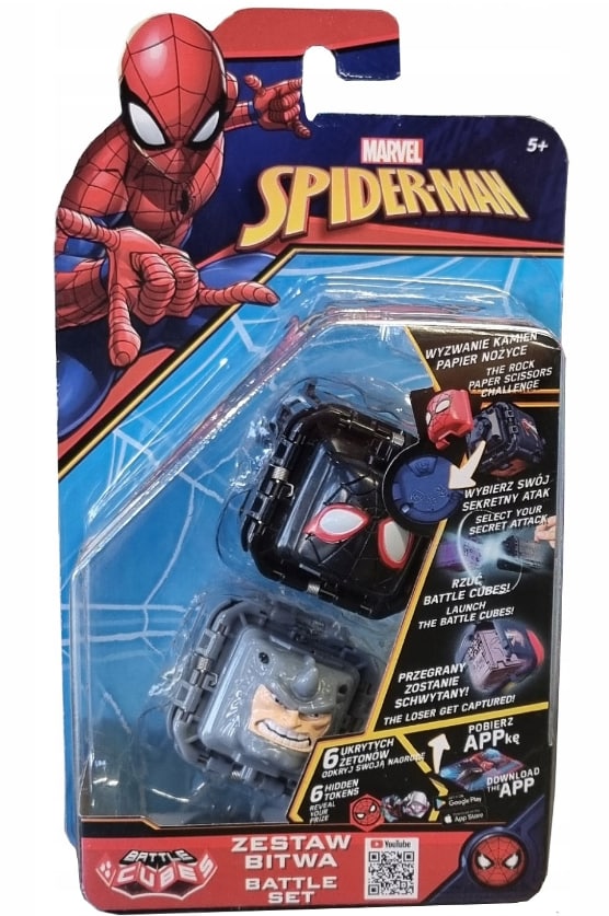 Marvel Spider-Man Battle Cubes to kolekcjonerskie kostki, które służą także do gry w stylu Papier-Kamień-Nożyce.