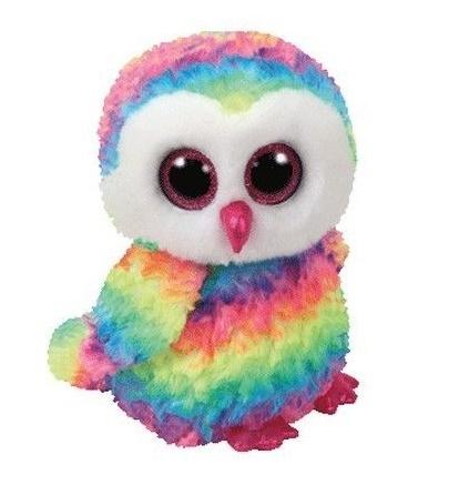 Zabawka pluszowa Beanie Boos Owen - sowa z błyszczącymi oczami. Rozmiar 24 cm.