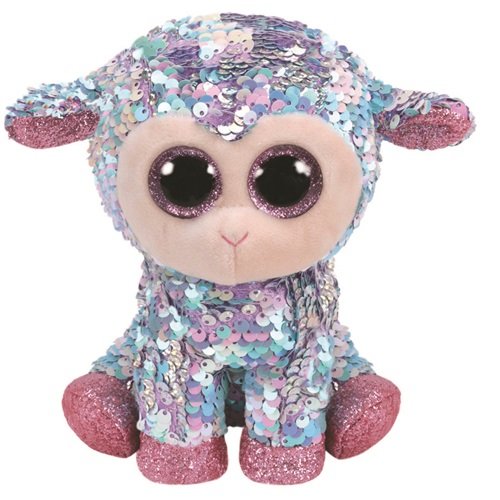 Pluszak ma błyszczące, brokatowe oczy oraz jest pokryty CEKINAMI