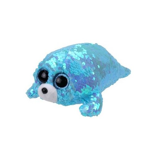 Pluszak ma błyszczące, brokatowe oczy oraz jest pokryty CEKINAMI