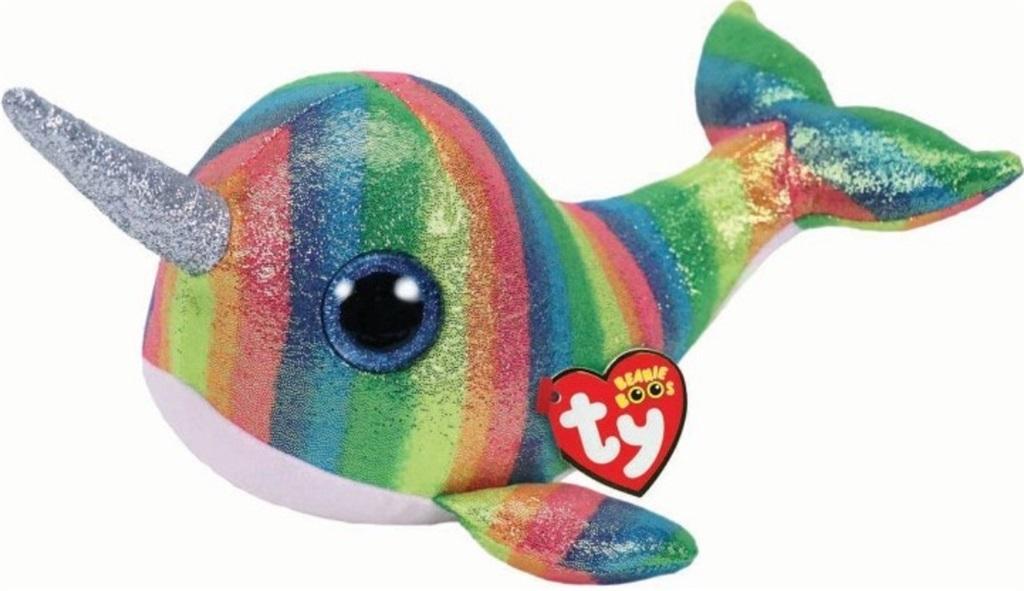 Beanie Boss - Nori 15 cm, Narwal jednozębny kolorowy. Wykonany z miękkiego pluszu z dbałością o najmniejszy szczegół.