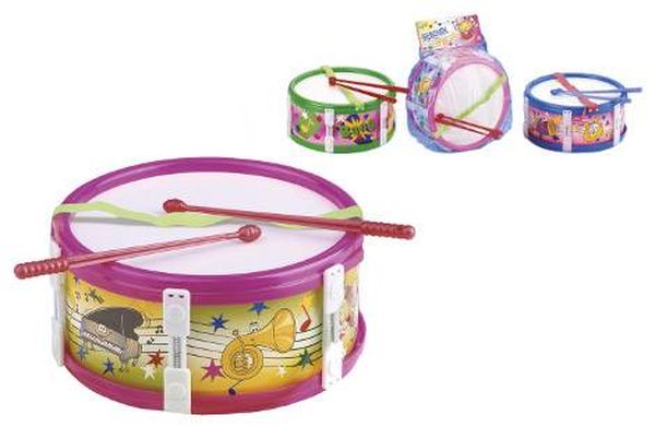 Każdy bębenek ma szarfę, co umożliwia zawieszenie zabawki na szyję