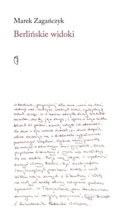 „W Berlinie, przynajmniej dla mnie, ważni są inni, wędruję więc, szukając ulotnych cieni, wydeptuję szlak, licząc, że w końcu odnajdę dawny kształt miasta, choćby jego zarys, i wpiszę w niego kilka bliskich mi postaci, mocniej uchwycę ich obecność. Za dużo w tym mieście ścieżek, za dużo tropów, ulice zmieniają się w biblioteki wypełnione podziwianymi książkami. Czytane strony prowadzą do miejsc o odmiennym dziś wyglądzie, linie papilarne literatury i życia nie nakładają się na siebie. Mogę więc jedynie w wyobraźni tworzyć własny Berlin, być kartografem imaginacyjnych przestrzeni. Kreślę w nich kilka miejsc znanych z literatury i kładę na nich jak kalkę obrazy uchwycone podczas spacerów. W Tiergartenie poza Gombrowiczem towarzyszą mi rosyjscy emigranci, Effi Briest i bohaterowie Roberta Walsera”.