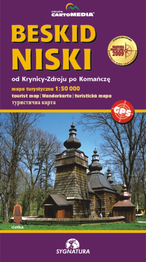 Mapa turystyczna w skali 1: 50 000.Mapa dwustronna, zniszczone wsie, schemat szlaków turystycznych.Schroniska i bazy, trasy rowerowe i konne.Czasy przejść, plastyczne cieniowanie.Mapa dojazdu.Informator.