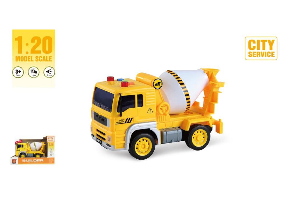 Klasyczna żółta betoniarka to spełnienie marzeń niejednego chłopca. Idealna do zabawy w domu. Dzięki napędowi typu frykcja, mknie po równej powierzchni do swojego punktu rozładunku. Samochód wykonany jest z dobrego plastiku z różnym elementami ruchomymi.