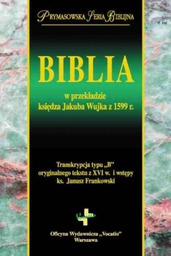 Dzieło oparte na XVI-wiecznym przekładzie ks. Jakuba Wujka, transkrypcja typu ,,B"" (zachowano język staropolski z zastosowaniem współczesnej ortografii i interpunkcji). Szatę graficzną stanowi rekonstrukcja oryginalnych inicjałów renesansowych. Biblia ks. Wujka została ukończona w 1596 r., a po raz pierwszy ukazała się drukiem po śmierci tłumacza w 1599 r. Od razu zdobyła uznanie i poczesne miejsce wśród ówczesnych przekładów Pisma Świętego. Jest ona nie tylko pomnikiem polskiej myśli teologicznej, ale także dziełem literackim o wielkiej wartości, na którym wychowywały się pokolenia Polaków, mającym wielkie zasługi dla rozwoju polskiego języka i literatury. Stylem przekładu ks. Wujka zachwycali się Mickiewicz, Słowacki i Sienkiewicz.Tekst Wujkowego przekładu Biblii był w ciągu ostatnich 400 lat wielokrotnie zmieniany. Prezentowana edycja różni się od dotychczasowych tym, że stanowi pierwsze od stuleci wydanie tekstu w jego oryginalnej staropolskiej postaci i jako taka daje prawdziwą szansę rzeszom polskich naukowców, studentów, literatów i wszystkich innych zainteresowanym kulturą narodową spotkania się z tym niezwykłym dziełem w postaci jak najbliższej oryginało