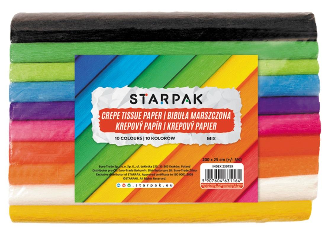 Bibuła marszczona w 10 kolorach - niezbędna każdemu uczniowi na zajęciach plastycznych.