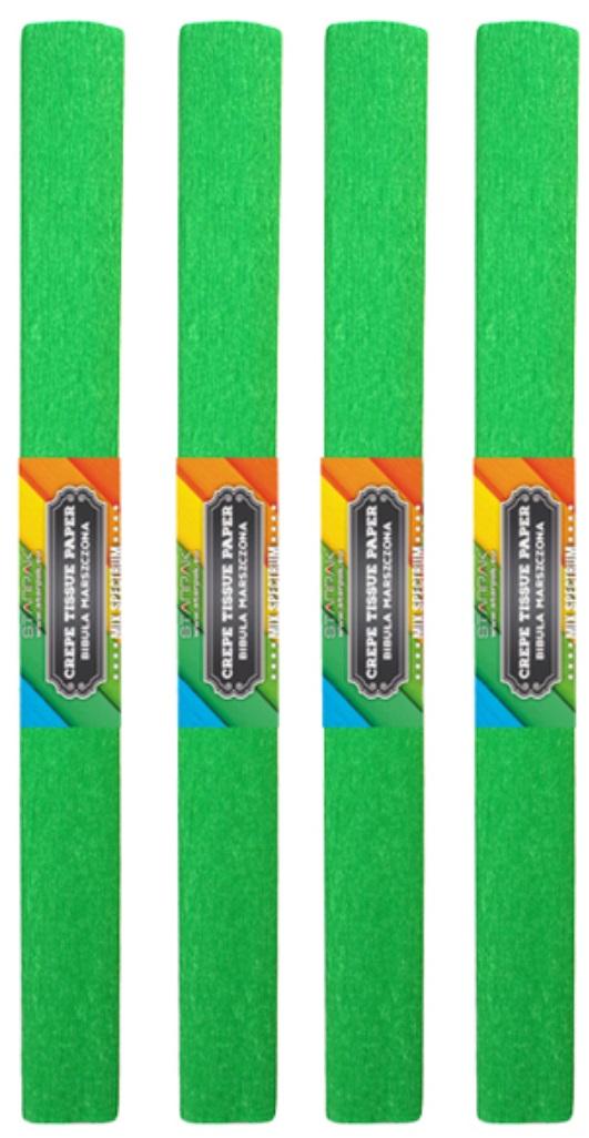 Bibuła marszczona, w kolorze zielonym - niezbędna każdemu uczniowi na zajęciach plastycznych.