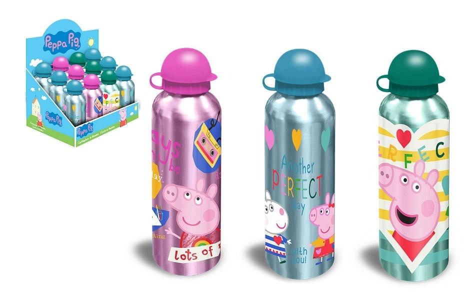 Bidon aluminiowy Peppa Pig 500 ml to bardzo lekki metalowy pojemnik na napoje dla dziecka.