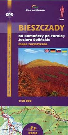 Bieszczady Od Komańczy po Tarnicę Jezioro Solińskie mapa turystyczna w skali 1:50 000Plan Ustrzyk Dolnych, szlaki, zniszczone wsie, trasy rowerowe, połoniny.