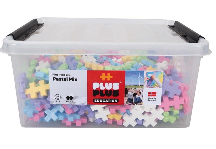 400 dużych pastelowych elementów Plus-Plus oraz książeczka z inspiracjami do budowania. Rozmiar opakowania: 40 x 30 x 19 cm. Wytrzymałe elementy, odpowiednie dla przedszkolaków oraz placówek edukacyjnych.Opakowanie posiada dwa uchwyty do łatwego przenoszenia i zamykania.