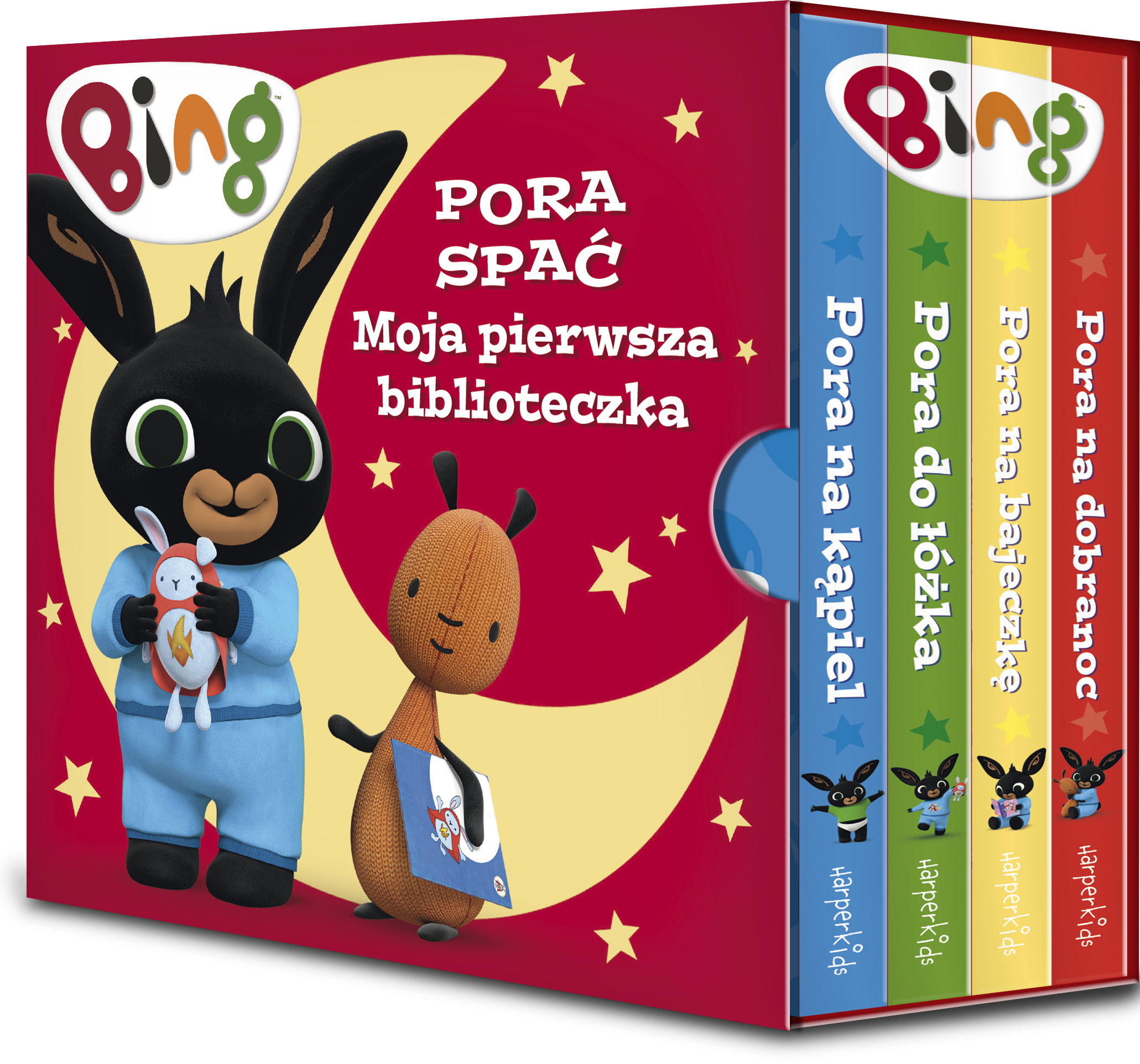 4 przesympatyczne kartonowe książeczki w pięknym etui to dobry pomysł na prezent dla kilkulatka. Każda książeczka jest poświęcona innej wieczornej czynności - Bing się kąpie, kładzie się do łóżeczka, słucha bajki, którą czyta mu Flop, a na koniec - mówi dobranoc całemu światu. Te urocze rytuały pomogą zasnąć nie tylko króliczkowi, ale i czytelnikowi!