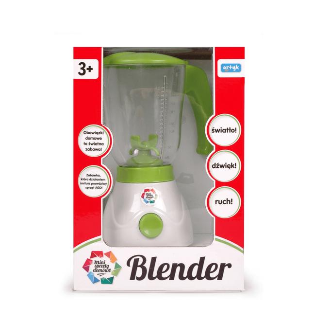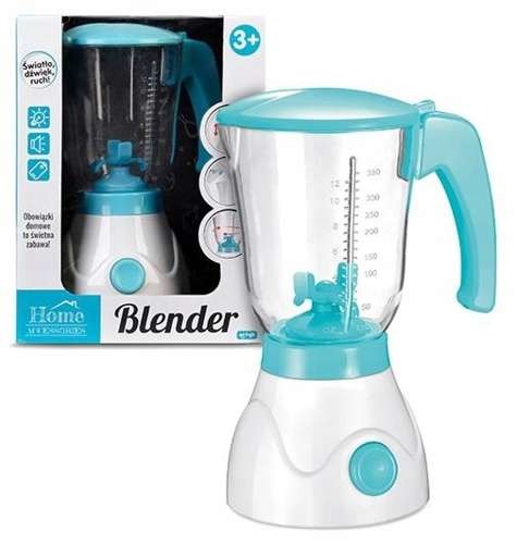 Blender z pokrywą, ruchome ostrza uruchamiane przyciskiem, realistyczne dźwięki.
