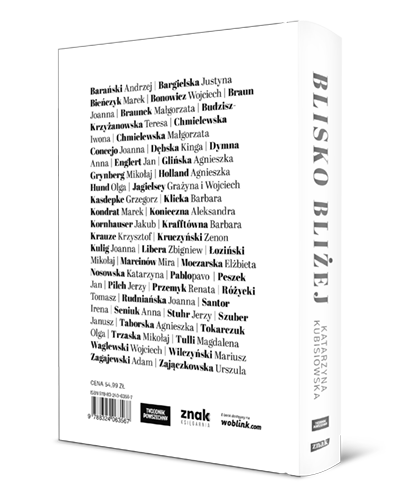 „Tylko w bliskości rodzi się prawdziwa rozmowa ” – mówi Katarzyna Kubisiowska. Zadebiutowała w „Przekroju”, pisała w „Filmie”, „Rzeczpospolitej”, „Gazecie Wyborczej”. Do rozmów zaprasza kluczowe postaci polskiej kultury. Jej rozmówcy zgodnie twierdzą, że potrafi budować bezpieczną atmosferę, stawiać nieszablonowe pytania, drążyć tematy, o których wcześniej nigdy z nikim nie rozmawiali. Z Katarzyną Nosowską o nadziei, z Agnieszką Holland o wspólnocie, z Ireną Santor o pasji – to tylko niektóre z rozmów o tym, co najważniejsze. Inspirujące, mądre, skłaniające do refleksji – bliskie spotkania, z których każde może na zawsze odmienić nasze spojrzenie na świat. Katarzyna Kubisiowska – dziennikarka „Tygodnika Powszechnego”. Absolwentka filmoznawstwa UJ. Współautorka Panoramy kina najnowszego 1980–1995. Leksykonu oraz Lektur na ekranie, czyli małego leksykonu adaptacji filmowych. Autorka książek Rak po polsku, biografii Jerzego Pilcha Pilch w sensie ścisłym, biografii Danuty Szaflarskiej Grać, aby żyć i wywiadu rzeki z Wojciechem Mannem Głos.