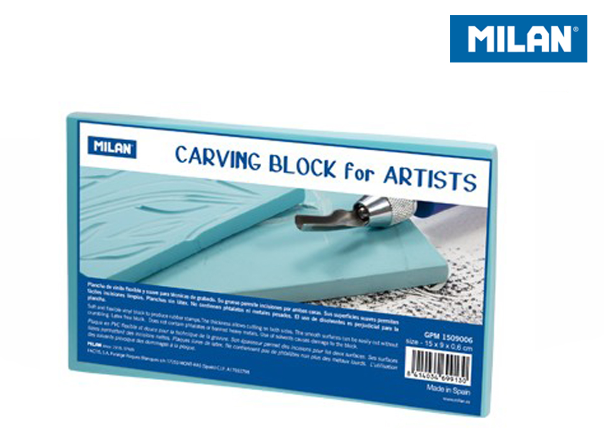 Blok do linorytu (Carving Block for Artists) jest przeznaczony do użytku w dziełach sztuki i rzemiośle. Jest to elastyczny i miękki arkusz winylowy służący do technik grawerowania i druku wypukłego. Ich gładkie powierzchnie pozwalają na łatwe i czyste nacięcia. Używając dłuta precyzyjnie żłobimy kontury, dodając detale o różnych grubościach. Przygotowane wyżłobienia po nałożeniu farby służą do drukowania wzorów, także po obu stronach. Blok łatwo się myje po użyciu i można go ponownie użyć. Blok nie zawiera ftalanów ani metali ciężkich. Użycie rozpuszczalników może uszkodzić blok. Rozmiar bloku: 150 x 90 x 6 mm.