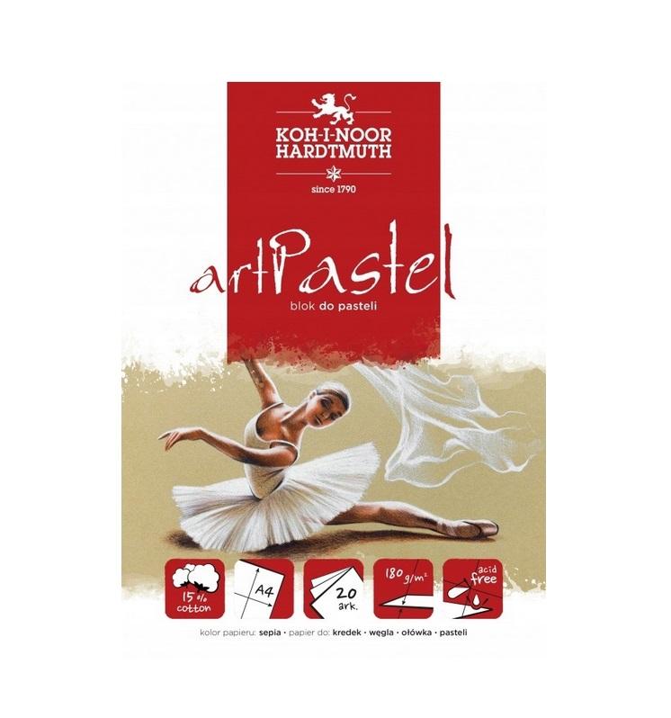 Blok Art Pastel został wyprodukowany z bardzo wysokiej jakości papieru, zawierającego 15 % włókien bawełny. Papier w odcieniu sepii jest delikatnie fakturowany, nie zawiera w składzie metali ciężkich ani kwasu. Posiada naturalne PH.