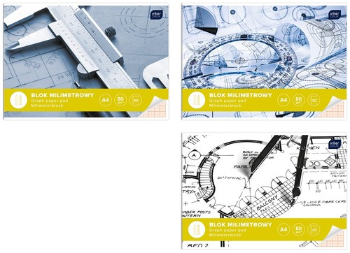 Blok z papieru milimetrowego, format A4, 20 kartek. 10 sztuk w opakowaniu zbiorczym. Producent Interdruk.