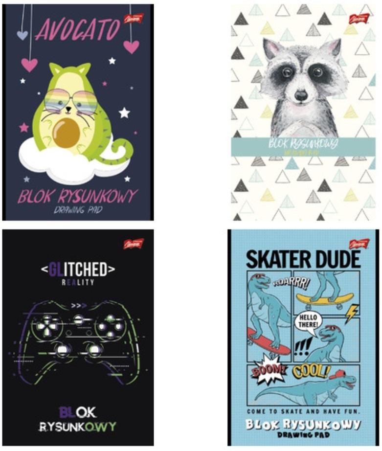 Blok zawiera 20 białych offsetowych kartek o gramaturze 80 g/m2. Okładka kredowa o gramaturze 115g/m2 wykorzystuje najnowsze motywy wzornicze UNIPAP. Dla podkreślenia, jakości wykończenia okładka jest dodatkowo nabłyszczana. Całość usztywniona tekturowym podkładem.