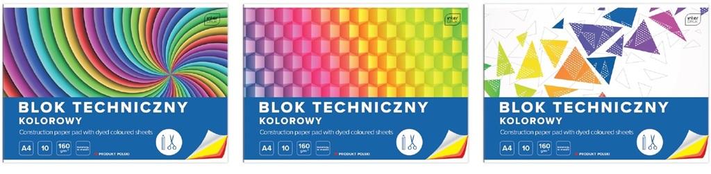 Blok techniczny kolorowy, format A4, mix wzorów. Producent Interdruk.