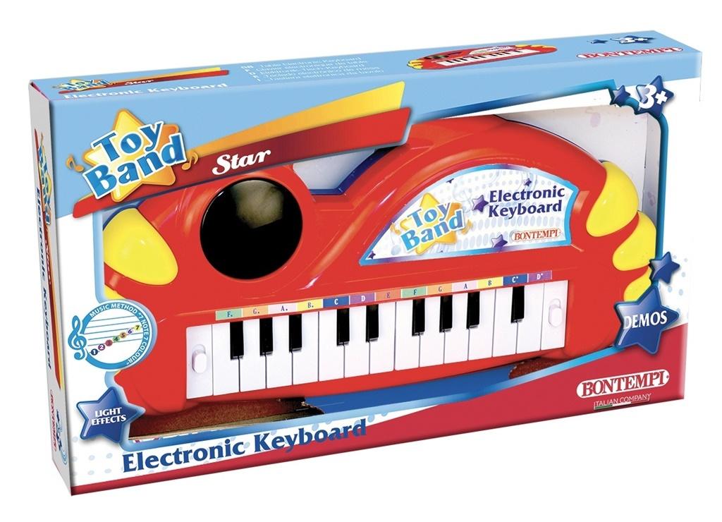 Organy elektroniczne włoskiej firmy Bontempi, zabawka która sprawi frajdę małemu muzykowi. Instrumentu zawiera: 22 klawisze, efekty świetlne, 2 rodzaje dźwięków. Wymiary produktu 34 x 18 x 4cm. Zasilanie 3xR6/AA 1,5V (nie dołączono do zestawu).