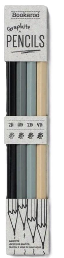 Zestaw 4 grafitowych ołówków po jednym z każdej twardości: 2H, HB, 2B oraz 4B.