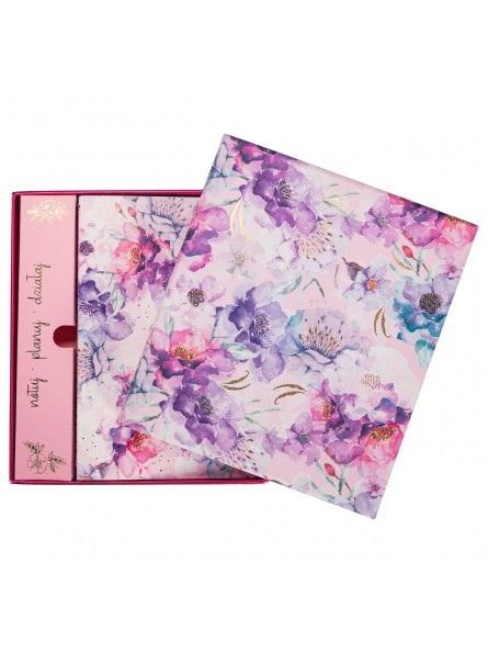 Zestaw prezentowy Miłość zawiera pudełko upominkowe z wieczkiem ozdobionym motywem kwiatowym z subtelnymi złoceniami oraz idealnie dobranym kolorem metalizowane spody. Wewnątrz pudełka umieściliśmy pięć różnych, starannie dobranych romantycznych notatników. Kwiatowe okładki zdobione tłoczeniami złotą folią, tworzą piękną kompozycję graficzną, a kolorowe przeszycia grzbietów dopełniają wyjątkowy charakter i podkreślają znaczenie detali. Notatniki sprawdzą się jako pamiętnik, szkicownik lub miejsce na wszelkie codzienne notatki.