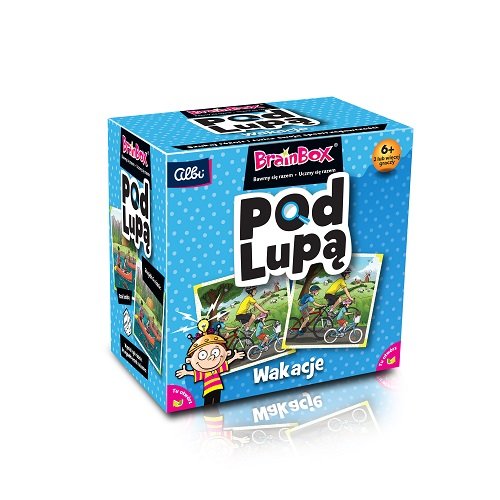 Pod Lupą Wakacje to karty obrazujące różne aktywności związane z wakacjami, wypoczynkiem oraz sportami.