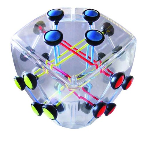 3. Rozwikłaj węzeł tak, aby żadna struna nie stykał się z innym oraz kolorowe końcówki kołków były wszystkie na tej samej stronie układanki w tym samym kolorze.