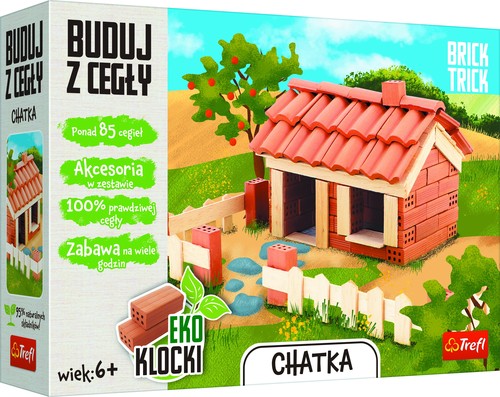 Wybuduj klimatyczną, wiejską Chatkę, wykorzystując prawdziwe cegły, drewno i elementy dekoracyjne jak trawę czy korek. Skorzystaj z dołączonych planów budowy lub użyj wyobraźni do stworzenia niepowtarzalnej konstrukcji. To nie koniec zabawy! Rozpuść konstrukcję w wodzie i buduj dalej wykorzystując ponownie te same cegły! W opakowaniu znajdziesz: prawdziwe cegły, drewniane deseczki, klej, elementy dekoracyjne, podstawkę, naklejkę i instrukcję. Dbamy o środowisko, dlatego zestaw zawiera aż 95% naturalnych składników! EKO klocki = zabawa murowana!