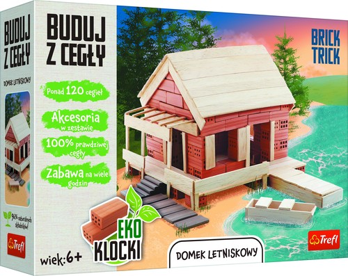 Wybuduj Domek Letniskowy, wykorzystując prawdziwe cegły, drewno i elementy dekoracyjne. Skorzystaj z dołączonych planów budowy lub użyj wyobraźni do stworzenia niepowtarzalnej konstrukcji. To nie koniec zabawy! Rozpuść konstrukcję w wodzie i buduj dalej, wykorzystując ponownie te same cegły! W opakowaniu znajdziesz: prawdziwe cegły, drewniane deseczki, klej, elementy dekoracyjne, podstawkę, naklejkę i instrukcję. Dbamy o środowisko, dlatego zestaw zawiera aż 96% naturalnych składników! EKO klocki = zabawa murowana!