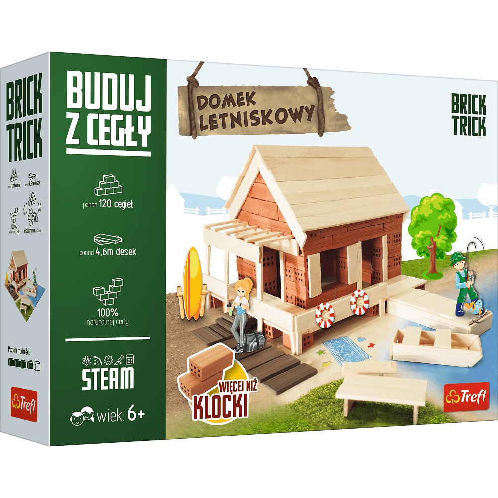 Wybuduj domek letniskowy, wykorzystując prawdziwe cegły, drewno i elementy dekoracyjne. Skorzystaj z dołączonych planów budowy lub użyj własnej wyobraźni do stworzenia niepowtarzalnej konstrukcji. Baw się dołączonymi pionkami prosto z wiejskiego świata. To nie koniec zabawy! Rozpuść konstrukcję w wodzie i buduj dalej wykorzystując ponownie te same cegły!