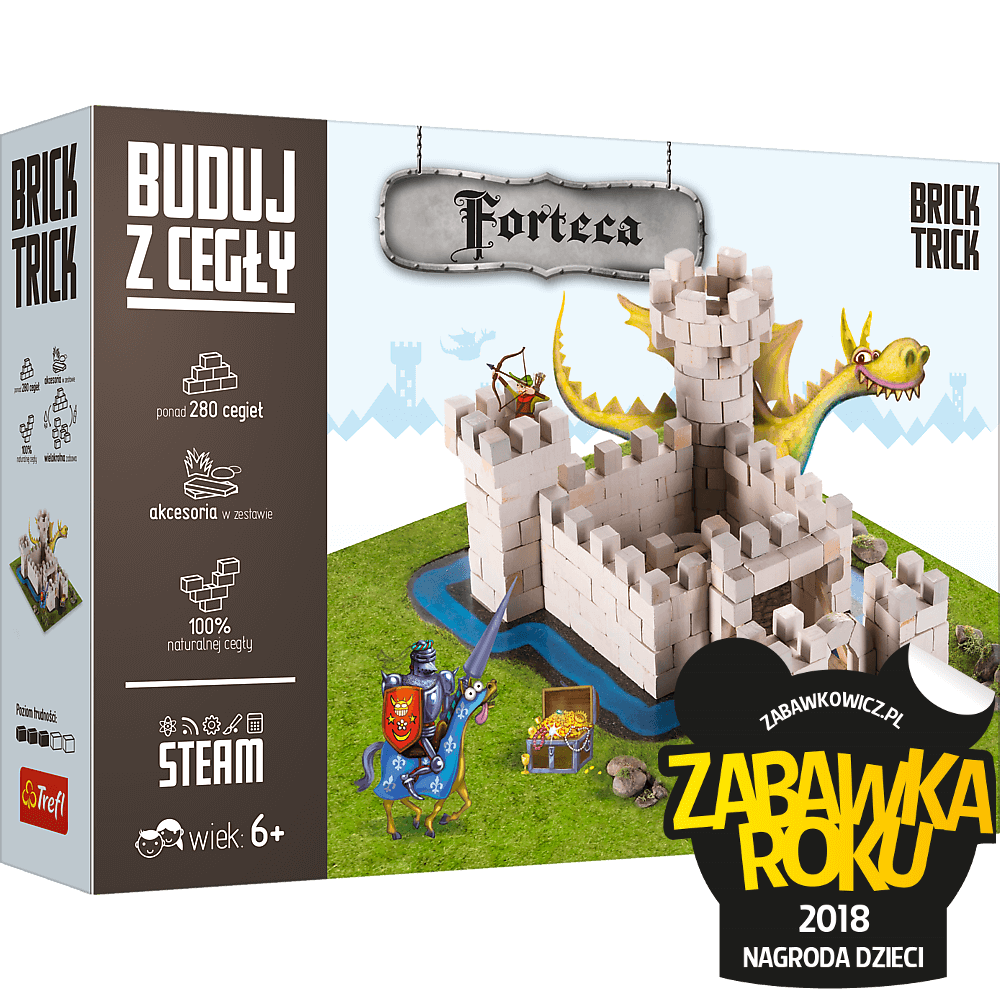 Wybuduj majestatyczną fortecę, wykorzystując prawdziwe białe cegły, drewno i elementy dekoracyjne jak trawę czy krzewy. Skorzystaj z dołączonych planów budowy lub użyj wyobraźni do stworzenia niepowtarzalnej konstrukcji. Baw się dołączonymi pionkami prosto z epoki średniowiecza! To nie koniec zabawy! Rozpuść konstrukcję w wodzie i buduj dalej wykorzystując ponownie te same cegły! W zestawie znajdziesz: prawdziwe cegły, klej, drewniane deseczki, elementy dekoracyjne, pionki, podstawkę, naklejkę i instrukcję!