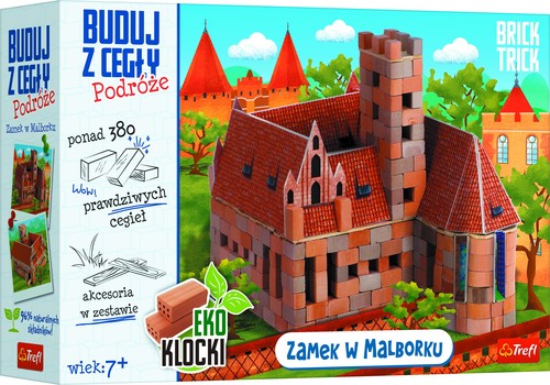 Zamek Krzyżacki w Malborku nie jest już niedostępną twierdzą! Seria Brick Trick Podróże umożliwia przeniesienie się w zamierzchłe czasy i zbudowanie od podstaw Zamku Wysokiego. Zestaw zawiera ponad 380 dedykowanych cegieł mozaikowych, które powstały z połączenia 3 kolorów gliny: czerwonej, białej i czarnej. Dołączone do opakowania elementy ozdobne w postaci trawy, mchu i kamieni dodatkowo udekorują budowlę. Precyzyjnie rozrysowane witraże i dachówki, jak również monumentalna konstrukcja tekturowego dachu pieczętują replikę Zamku w Malborku. Przekonaj się sam, że efekt końcowy zapiera dech w piersiach. Zestaw zawiera aż 96% naturalnych składników!