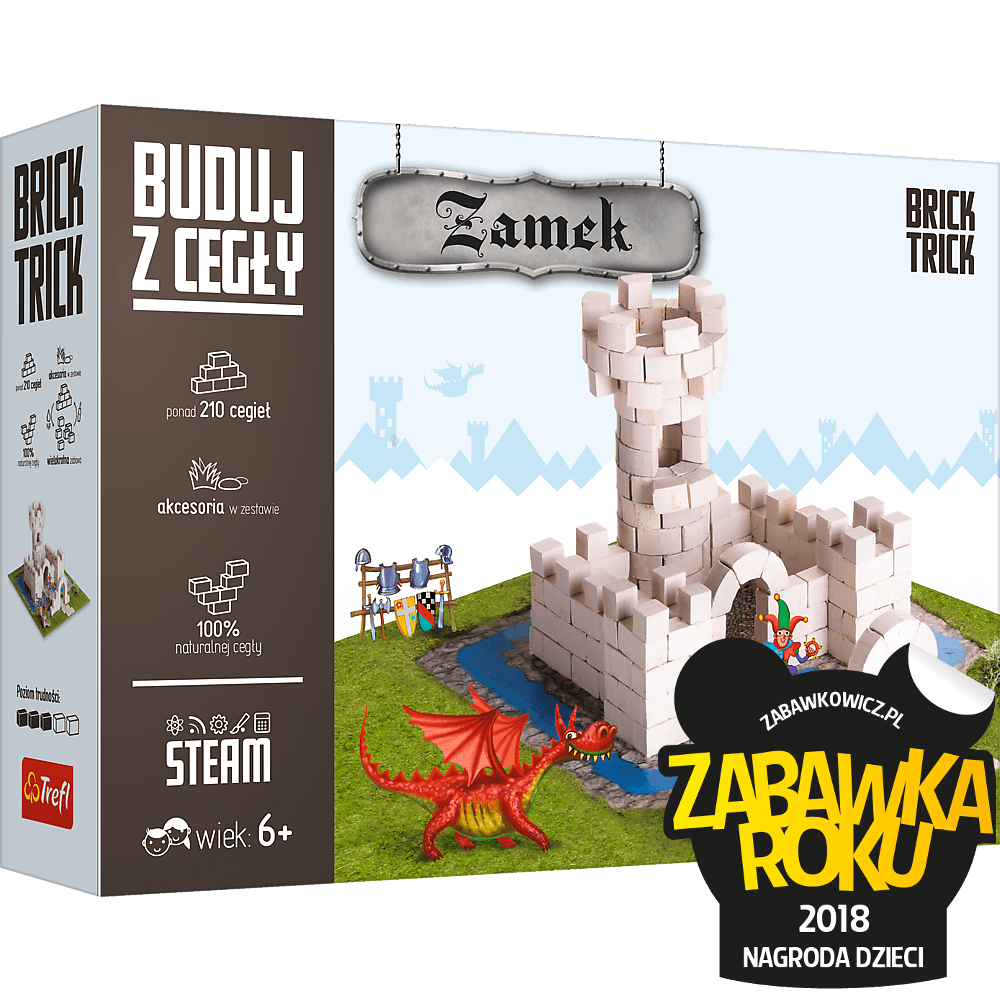 Brick Trick - Zabawa Murowana! Zostań konstruktorem, wykorzystując do budowy prawdziwe cegły i drewno! W instrukcji znajdziesz obszerne ciekawostki prosto z placu budowy. Dowiedz się, jak urozmaicić swoją konstrukcję dzięki wielu interesującym pomysłom i rozwiązaniom. Buduj według instrukcji lub użyj wyobraźni do stworzenia własnej, niepowarzalnej konstrukcji. Możesz też połączyć kilka budynków, tworząc klimat wsi, miasta lub średniowiecza.