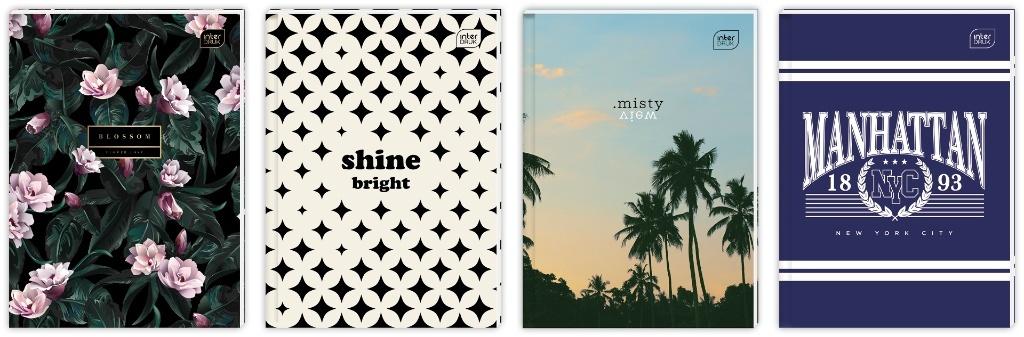 Brulion A4 linia, 96 kartek, mix wzorów. 5 sztuk w opakowaniu zbiorczym. Producent Interdruk.
