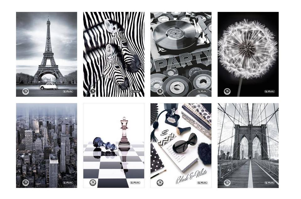 Zeszyt A5/60k. kratka Black&White. 5 sztuk w opakowaniu zbiorczym. Wzory wysyłane losowo.